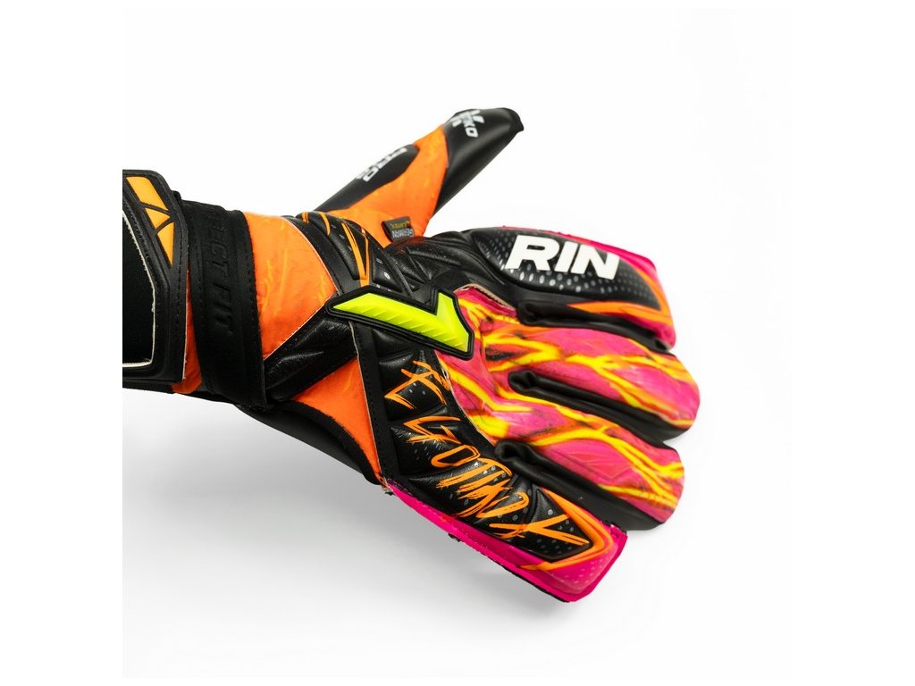 Hřbet ruky: Rukavice jsou vyztuženy přírodním latexem na ukazováčku a malíčku pro lepší pocit přiléhavosti. Pevný textilní materiál s digitálním sublimačním potiskem a gelovým potiskem na prostředníčku a prsteníčku dodává rukavici odolnost a styl. Navzdory své lehkosti působí rukavice velmi pevně a dodává hráči pocit jistoty.