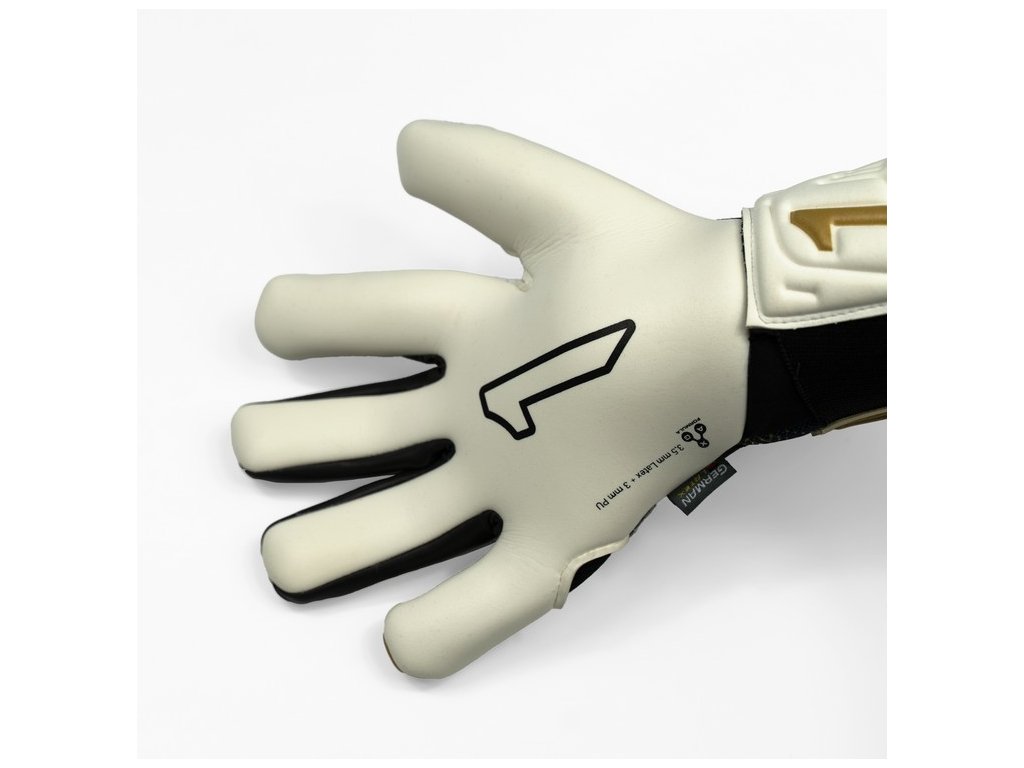 Prodloužená dlaň: Latexová část přes zápěstí rozšiřuje chytací plochu a zvyšuje kontrolu při kontaktu s míčem.